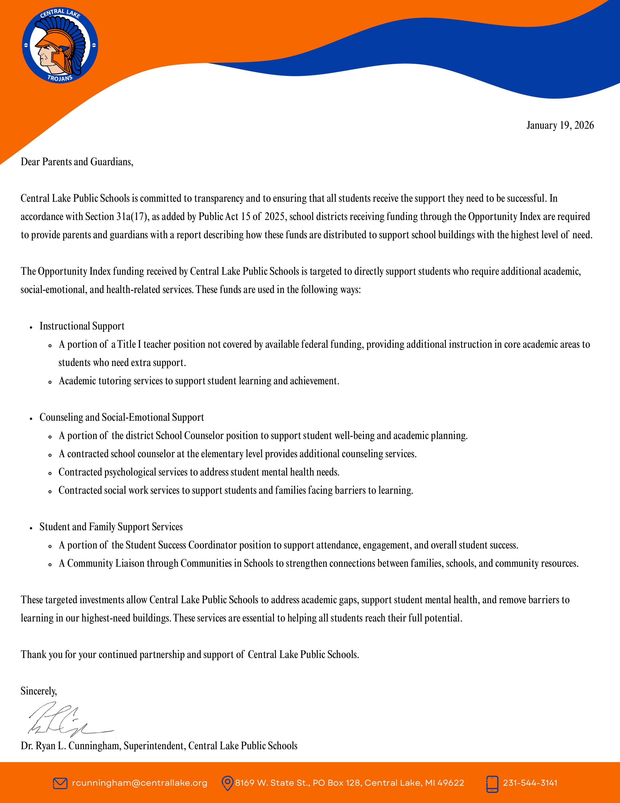 Central Lake Public Schools exists to educate students, strengthen families, and enrich our community.