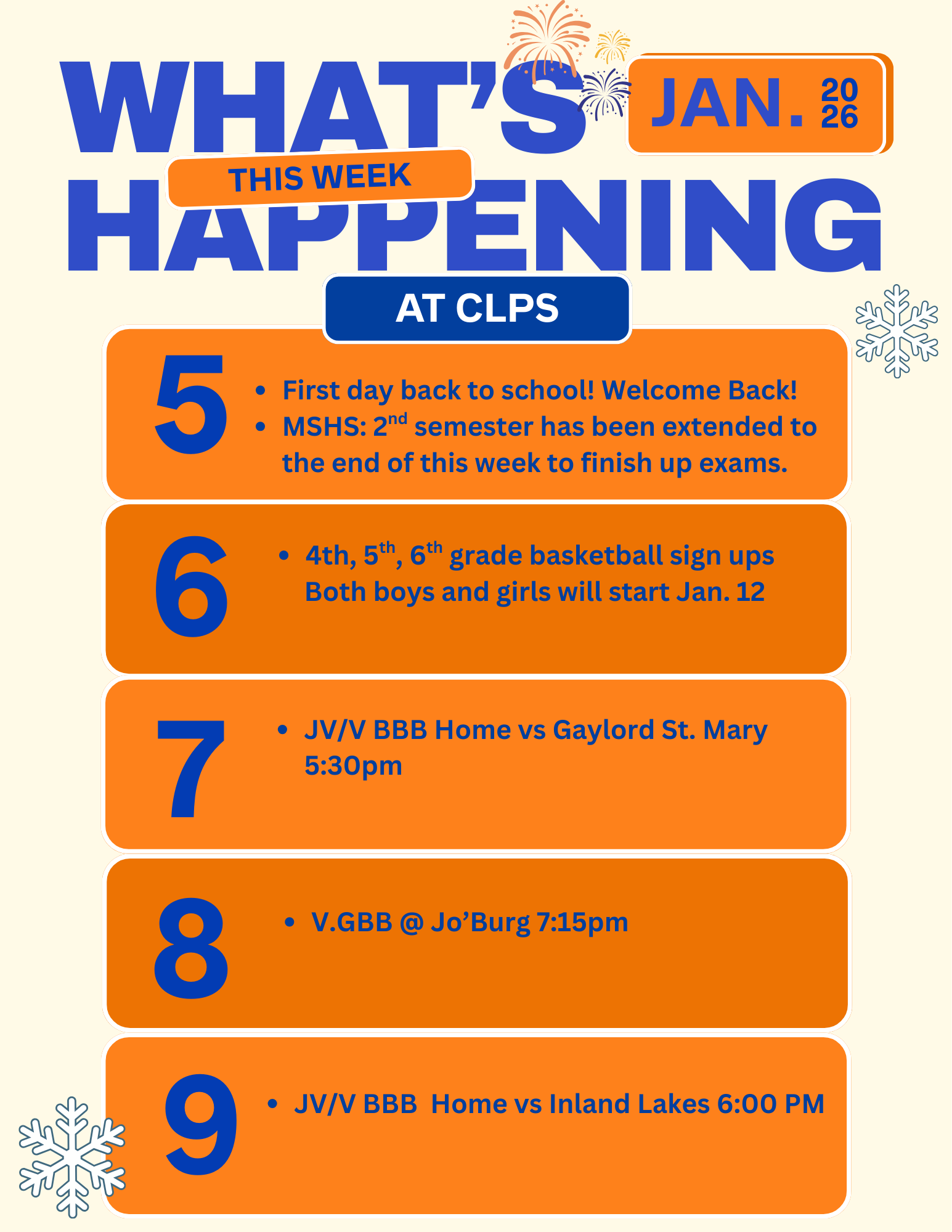 Half Day/Early ReleaseDate: Jan 22Calendar: CLPS Calendar